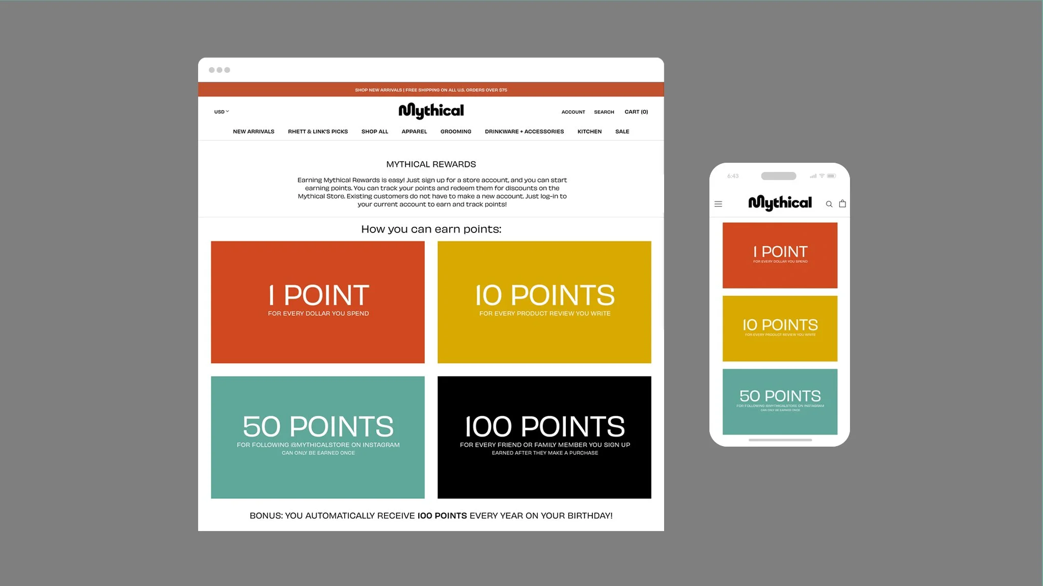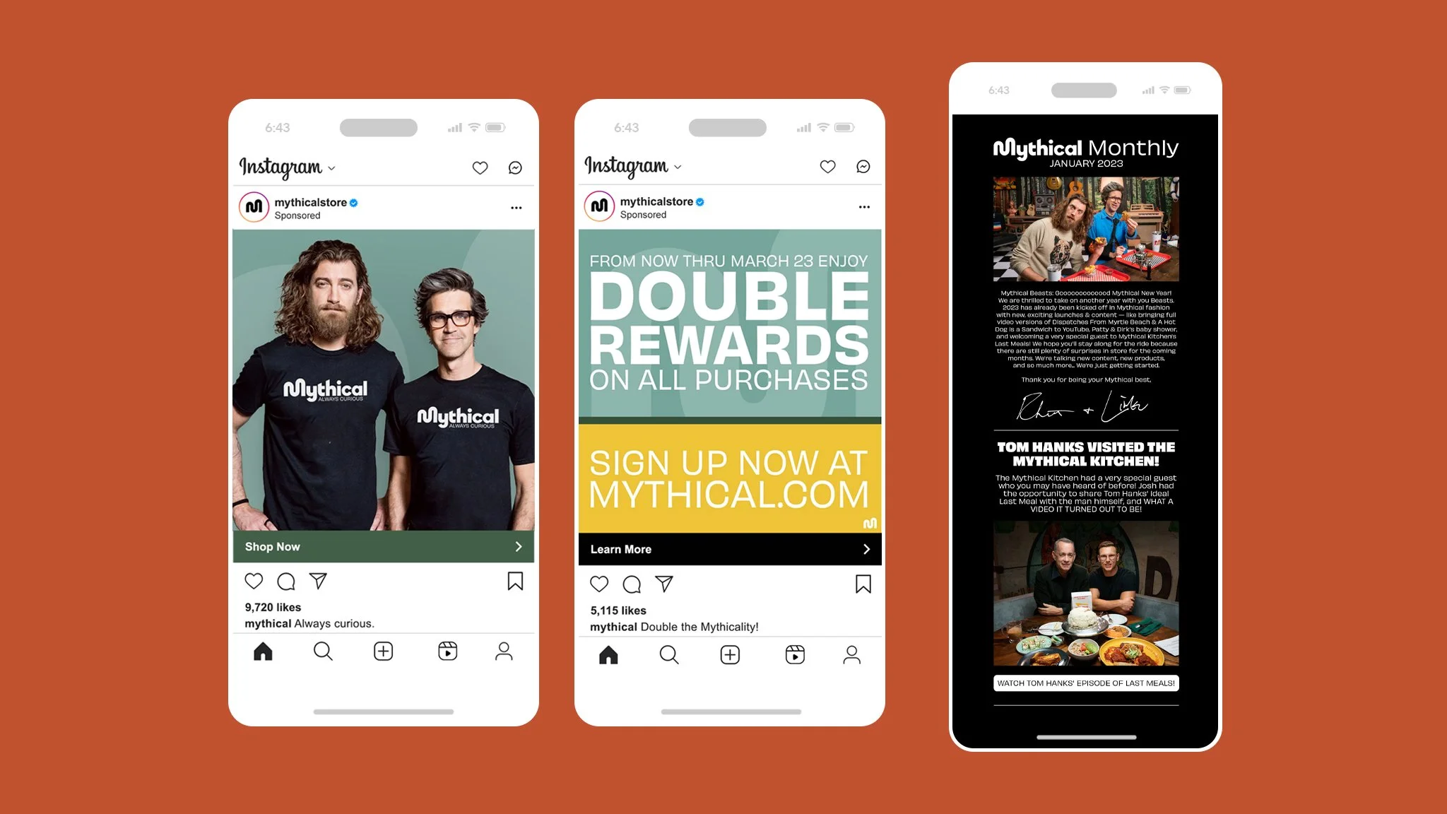 In collaboration with my design team, Mythical executives, and UTA Brand Studio we created a new brand identity system that we brought to life across surfaces and products to create a holistic and consistent aesthetic.